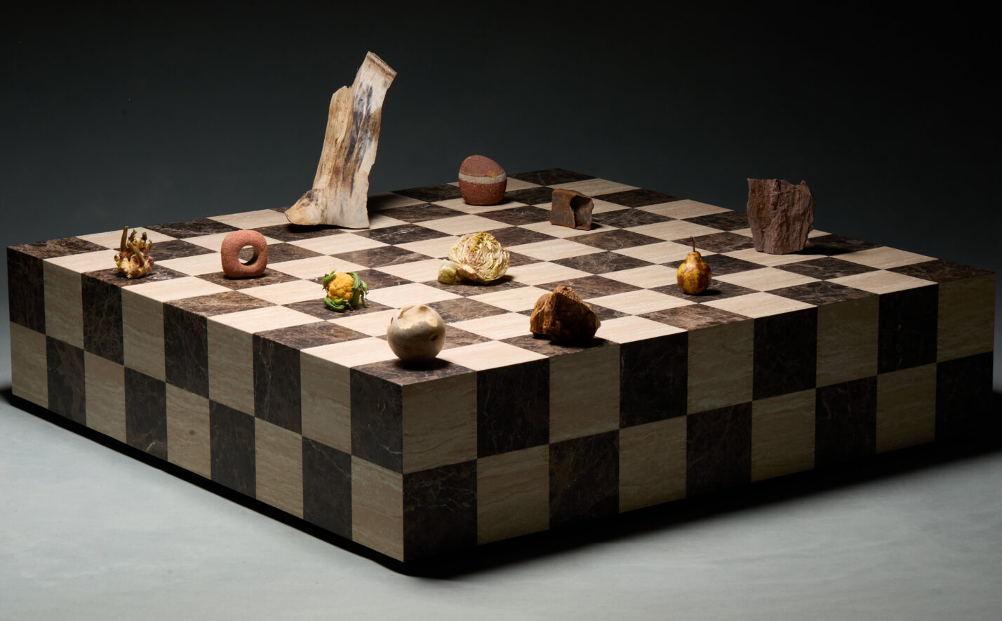 Graphic in composition and exacting in detail, the Meta Check Collection arranges hand-selected stone in a checkerboard pattern.