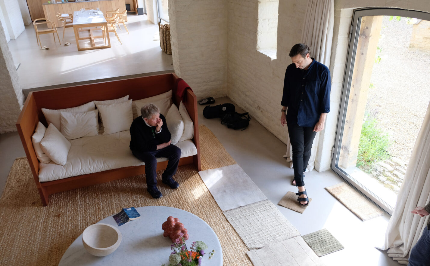 This summer, we visited John and Catherine Pawson at Home Farm in Oxfordshire for a tour, lunch and to review custom rug samples we’ve meticulously crafted over several months, room by room, for their selection, feedback and approval. The next stage is seeing these rugs come to life.