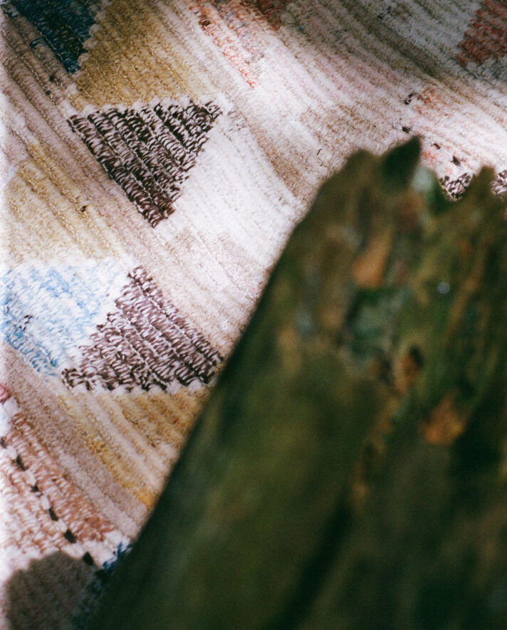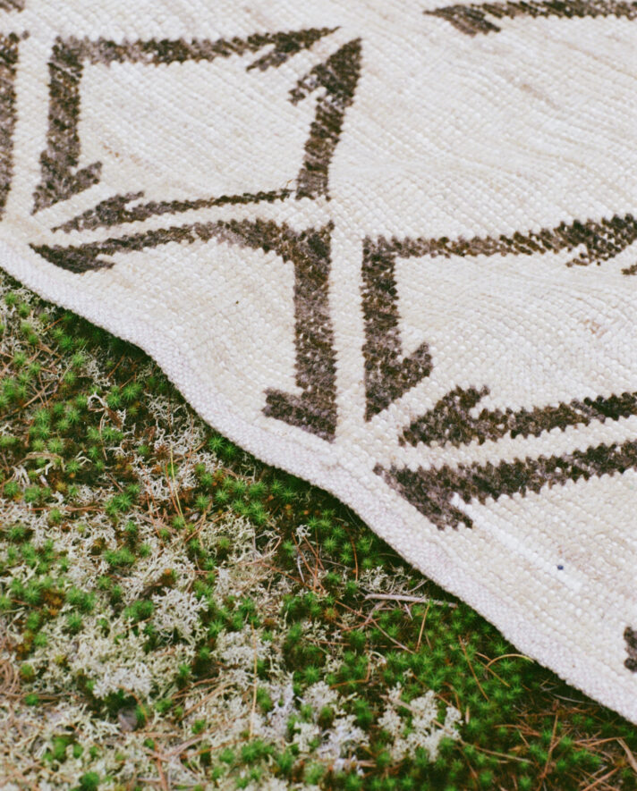 Complementing undyed wool with an earth-toned palette, the rugs spend nearly two months in the sun while the wool establishes a patina. The patina continues to develop over the lifetime of the rug, growing more beautiful with the passing of time.